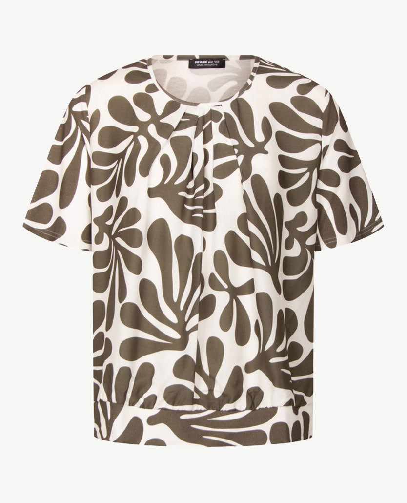 Frank Walder - Blouse - V-hals boordje - Lime met kakhi en off-white
