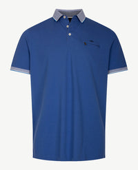 Luxe basis polo in comfortabele uitvoering van katoen met spandex in marineblauw met kobalt. Deze polo heeft een borstzakje met ritsje en Baileys koos voor aangezette boordjes langs de mouwen in pinpoint effect, net als de kraag. De splitjes aan de zijkant van de polo zijn afgezet met een contrast stof in jeansstof, net als de binnenkant van de kraag en de belegkant met de knoopjes. De andere kant van het beleg heeft een stof in uni piqué. Top polo!