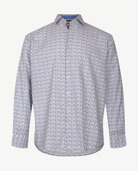 Brax - Harold P - Overhemd met werkje - Stip beiges, blauw, bruin met wit