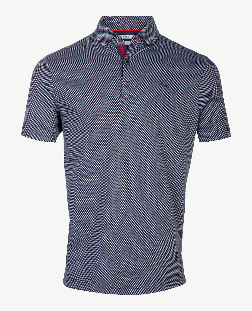 Polo in een luxe kwaliteit van katoen en polyester. De kraag is dubbel en doorgestikt langs de rand. Het beleg is afgezet met een luxe bies van marine met rood en sluit met 3 knoopjes. Splitjes langs de zijkanten. Tijdloos en sportief. Zeer comfortabele pasvorm. Goed wasbaar. Uit de Feel Good serie van Brax.