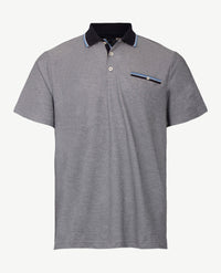 Polo in een zacht gebreide, luxe jersey kwaliteit van katoen met polyamide voor de vormvastheid. Het beleg is afgewerkt met een bies in jersey van marineblauw, wit en grijs, mooie frisse kleuren. Splitjes aan de zijkanten en de binnenkant van de kraag zijn gevoerd met uni marineblauw, geen borstzakje. Zeer comfortabel en niet zo dik. Past eigenlijk bij alles, en staat meteen mooi aangekleed. Zeer goed wasbaar, blijft jaren mooi. Gemakkelijk aan- en uit te doen door de knoopsluiting. Uit de Easy Care serie van Brax. Dat betekent wassen en ophangen.