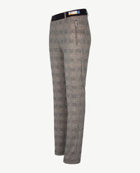 Uit de 'Lillyth' serie van Brax Raphaela. Deze broek van een mooie jersey kwaliteit heeft een opgezette zwarte elastieke tailleband (met riemlussen) en de bovenbenen zijn extra slank. De taille geeft dus wat meer ruimte zonder dat de bovenbenen wijder worden! Twee zakken aan de voorkant die met een ritsje sluiten. Er is een gulp opgestikt, de broek oogt dus als een gewone pantalon. Een broek heeft nog nooit zooooo lekker gezeten. Tijdloze ruit in modern jasje door het subtiele cognackleurige draadje. De labels die u op de band ziet kunnen er gemakkelijk adgehaald worden. Uit de Raphaela serie van Brax.