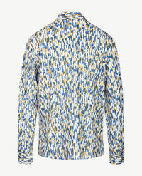 Blouse in een prachtige moderne crêpekwaliteit met iets elastan, dat draagt super comfortabel omdat het mee rekt. Blokjesachtig dessin verwerkt in streep dessin dat gemakkelijk combineert en niet snel verveelt. Kleine schoudervullingen (die gemakkelijk te verwijderen zijn) maken het silhouet wat pittiger. Met het bekende extra knoopje waardoor hoog gesloten kan worden, maar het niet helemaal dicht hoeft. Splitjes aan de zijkant, dus ook goed over een rok of broek te dragen. Coupenaden maken het model wat aansluitender en dat kleedt mooi af. Goed wasbaar en snel droog. Van Erfo.