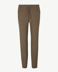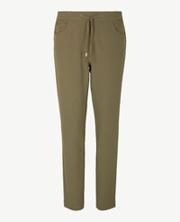 Supercomfortabele broek in een fijne travel kwaliteit. Prachtige kleur die heel gemakkelijk combineert. Comfortabele pasvorm door de brede elastische tailleband en het elastan in de stof dat zorgt voor veel rek. Aan de voorkant is een glad stuk in de band verwerkt, kan aangetrokken worden met het koordje. Koordje kan ook eenvoudig verwijderd worden. De zakken zijn handig voor het opbergen van kleine dingen. Slank bovenbeen, kleedt mooi af. De pijp loopt recht naar beneden. Gemakkelijk zelf korter te maken. Sportief met een t-shirt of top, gekleder met een mooi vest. De rekbare stof en elastieke band vergemakkelijken het aan- en uitdoen. Goed wasbaar en snel droog. Van Frank Walder.