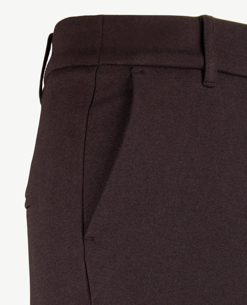 Moderne classy, broek in een stevige en toch soepele jersey stof met elastan. De pijp loopt recht naar beneden. Een nieuwe model van Frank walder in de Mia serie! Twee open steekzakken die in de zijnaden verwerkt zijn en 2 faux zakken aan de achterkant. Een brede opgezette boord van elastiek die in dezelfde stof verwerkt is met riemlussen. Het hele jaar door draagbaar. Een broek die met alles gecombineerd kan worden.