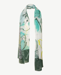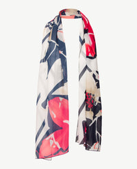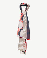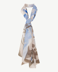 Charmante, lange shawl in een prachtige lichte voile. Een echt luxe artikel. Klassiek én modern in een hele zachte kwaliteit. Kleurstelling die bij een beige, camel, taupe en zwarte met off-white garderobe past. Maakt een outfit af. Chique, stijlvol en tijdloos.