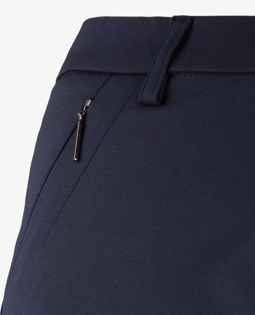 De Zene57 is moderne broek met elastiek rondom in een fijne jersey. Een mooi smal gesneden model van Gardeur dat afkledende details heeft zoals de ingezette bies aan de zijkant en de achterkant van de pijpen die wat meer om het been heen naar voren liggen. De opgezette boord heeft soepel elastiek met riemlussen, verwerkt in de stof van de rest van de broek. Twee schuin ingezette blinde zakken op de voorkant die sluiten met ritsjes. De twee zakken op de achterkant zijn faux. De pijpen zijn wat smaller bij de enkel. Zeer gemakkelijk aan- en uit te doen. Gemakkelijk wasbaar en snel droog.