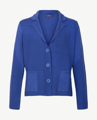 Sportief blazervest in een wat grover breisel, in een hele zachte kwaliteit die aanvoelt als wol maar het niet is, van Gollé Haug. Prachtig in haar eenvoud. De kraag valt mooi soepel en de mouwen hebben een glad ingezet breisel, dat komt terug bij de kraag en de zakjes aan de voorkant. Handig voor het opbergen van kleine dingen. Sluit met drie knopen. Het hele jaar door draagbaar en super combineerbaar. We hebben er een t-shirt in dezelfde kleur bij.