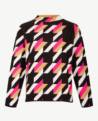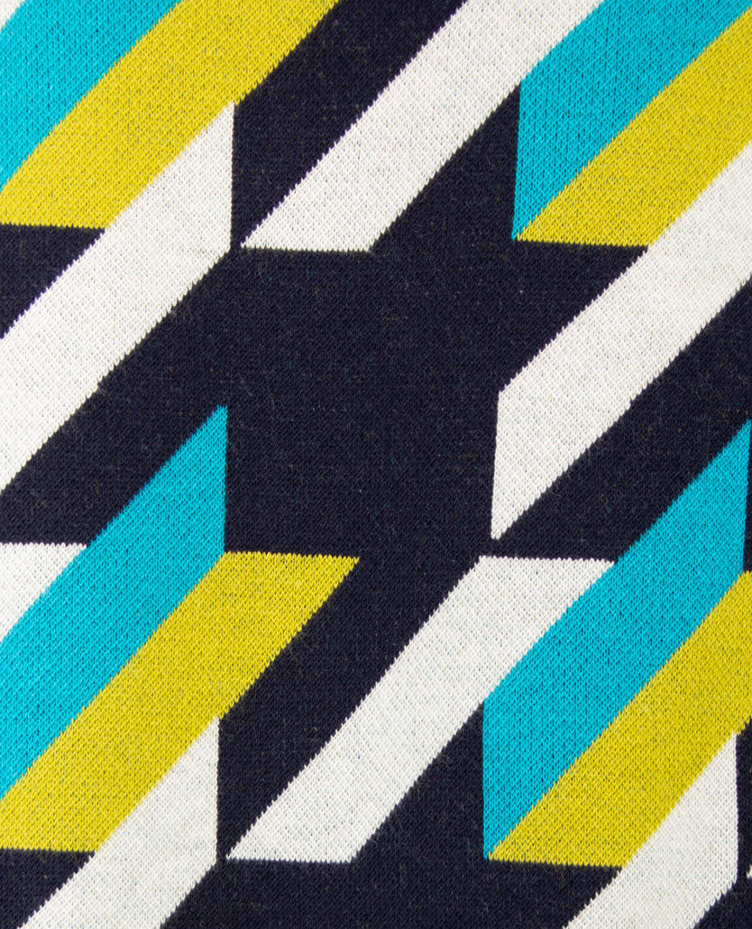 Moderne pullover met lage coll in een  glad breisel. In een grafisch dessin dat aan de voor en achterkant gelijk is en heel goed combineerbaar. Dit is weer zo'n voorbeeld van de superfijne kwaliteiten van Gollé Haug. Voelt als wol, maar is het niet! De coll is dubbel gebreid en niet te dik. Echt iets speciaals. Prachtige basiskleuren, fris door het warme azuur met lime.