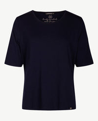 Basistop in een prachtige warme frisse azuur en een geweldige soepele jersey kwaliteit, van Gollé Haug. De ronde hals heeft een dubbele bies. Aan de zijkanten een klein splitje. Allemaal net iets luxer dus. De mouwen vallen mooi lang en de stof rekt goed mee, gemakkelijk aan- en uit te doen. Zeer goed wasbaar in een kwaliteit die heel goed ademt.