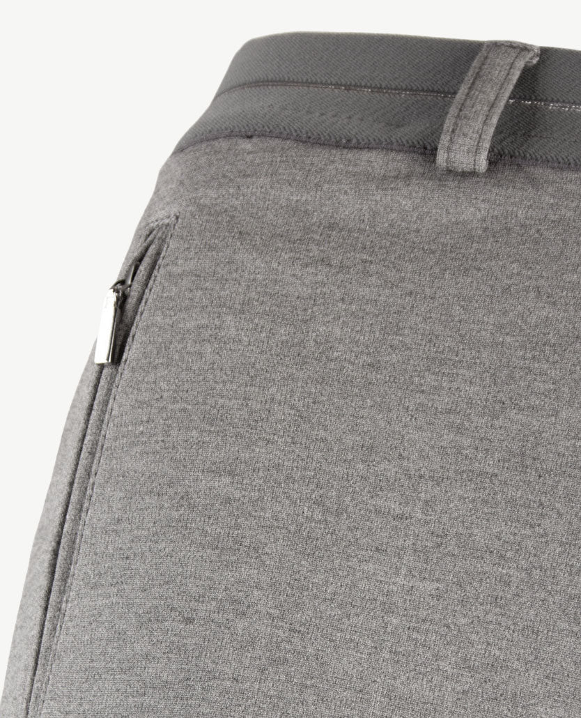 Moderne, classy damesbroek met elastiek rondom, in een fijne jersey kwaliteit. Dit model, de Lillyth van Brax Raphaela, heeft een extra ruime aangezette tailleband van elastiek, riemlussen, extra slanke bovenbenen en twee zakken aan de voorkant die sluiten met een ritsje. En een opgestikte gulp. De pijpen lopen iets taps toe. Zeer comfortabel.
