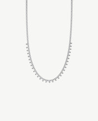 Korte ketting van kleine schakels en druppeltjes, in een mooie zilverkleur. Gemakkelijk sluitbaar. Chique, stijlvol en tijdloos. Zo'n ketting die elke outfit af maakt en heel draagbaar is.
