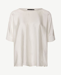 Lichte top in een hele zachte satijnkwaliteit en met een ronde hals van Le Comte. De voorkant heeft een mooie satijnfinish dat de top een rijke uitstraling geeft. De achterkant van de top is uitgevoerd in soepele, rekbare jersey. De doorlopende mouw heeft een afwerking van een gebreide boord met een open structuurtje, net weer even ander en moderne touch. Super basis top voor heel veel mooie combinaties. Goed wasbaar.