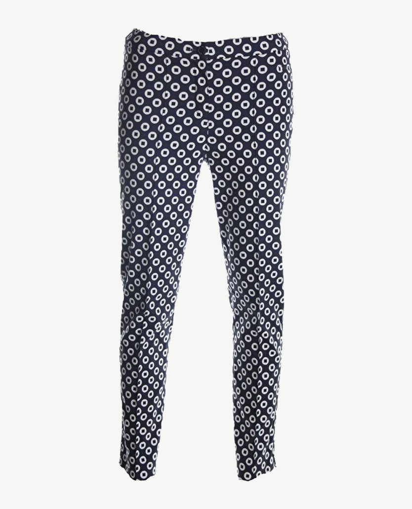 Michèle - Broek ⅞ Extra Slim leg- Dessin marine/wit