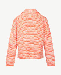 Modern, gebreid vestjasje met revers-kraag in frisse kleurencombinatie. Van Rabe, in een mooie lichte kwaliteit, charmant en classy. Fantasiebreisel, in een hele lichte uitvoering. Zowel sportief met een jeans te dragen als netjes met een rok. et open zakjes op de voorkant en sluit met 3 knopen. Normale mouwinzet en de afwerking langs de zakjes, mouw en zoom is van uni mandarijn. Fijne kwaliteit met katoen en polyester, goed wasbaar en droogt snel.