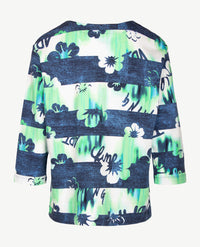 Rabe - Top - ronde hals - Groot dessin in groen, navy en wit
