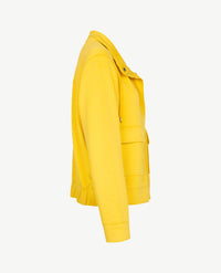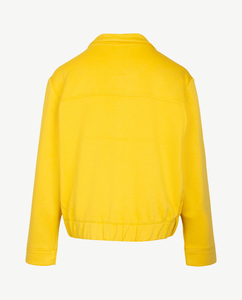 Licht, uitgewerkt kort vest in een sweat-achtige kwaliteit die heel soepel valt. Rabe heeft dit zachte vest uitgevoerd in een warme kleur geel, combineert verrassend goed, het hele jaar door. Grote sportieve zakken op de voorkant. Opstaande kraag met een koordje dat aangetrokken kan worden, breed elastiek in de zoom voor een bloezend effect en aangezette manchet bij de mouw. De voor- en achterkant heeft een schouderpas. Blind beleg met drukknopen. Gemakkelijk aan- en uit te doen.