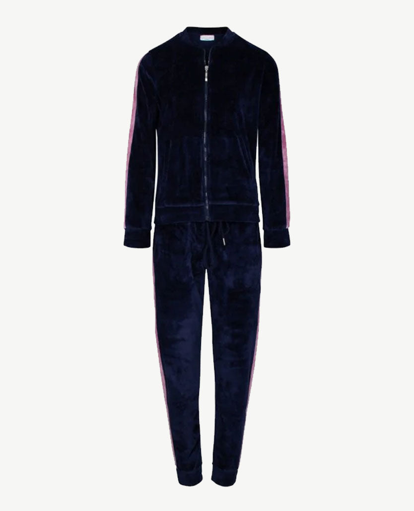 Sportief en stijlvol huispak van nicky-velours in marine/roze in een mooie soepele nicki velours kwaliteit. De boord kan tot bovenaan dichtgeritst worden. Veel mooie details zoals de subtiel verwerkte banen van roze aan de zijkant van de mouwen en de broek. De broek heeft ook twee zakken en een breed tunnelelastiek met een koordje. Heel fijn voor bijvoorbeeld na een operatie als u niet meer echt bedlegerig bent, maar alles nog wel heel comfortabel mag zitten. Met een top eronder bijvoorbeeld, ziet u er toch verzorgd uit. De rekbare stof en de rits vergemakkelijken het aan en uit doen. De steekzakken zijn handig om kleine dingen in te doen. Prachtige kwalitiet, goed voor jarenlang draagplezier. Goed wasbaar. Van Ringella.