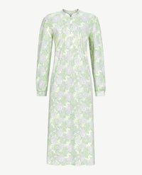 Ringella - Klassiek lang nachthemd met knoopsluiting en boordje - Groen met wit