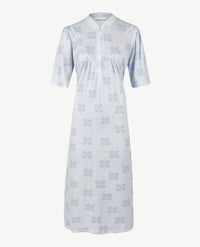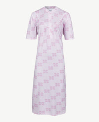 De luxe uitvoering van ons klassieke basisnachthemd in een zachte kwaliteit jersey katoen met modal. De korte mouw is aangezet met plooitjes bij de schouder. De rekbare stof vergemakkelijkt het aan en uit doen, net als de 5 knoopjes op het beleg. Tot bovenaan sluitbaar, met een boordje dat mooi tegen de hals aan ligt. De plooitjes boven de bustelijn geven een charmante uitstraling aan het nachthemd en zorgen voor extra ruimte. Van Ringella.