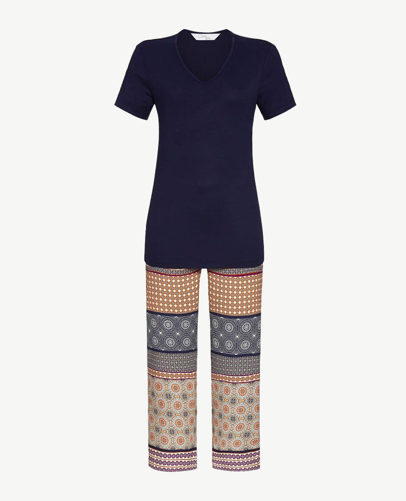 Ringella - Lounge/pyjama - V-hals en wijde broek - Blauw met dessin