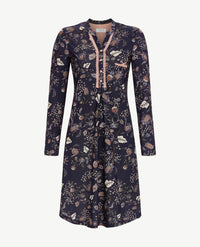 Ringella - Nacht/loungehemd - ronde V-hals - Navy met rose en grijs