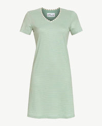 Een fijn zomers nachthemd van katoen en modal (dat is ook een natuurvezel) in een leuk streepjes dessin. De hals heeft een biesje van een iets sterker contrast streepje. De hals sluit mooi aan, de mouwen niet te kort. De rekbare stof vergemakkelijkt het aan- en uit doen. Comfort size, valt dus lekker ruim. Uit de 'Bloomy' serie van Ringella.