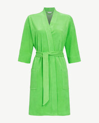Charmante ochtend/badjas in een fijne zachte kwaliteit badstof met stretch, dat rekt lekker mee. Prachtige frisse kleur! In de jas is een binnensluiting verwekt, zo blijft de jas altijd mooi zitten. Twee grote opgestikte zakken aan de voorkant en het beleg is wat bredere en dubbele uit de stof, net wat luxer. De losse overslag vergemakkelijkt het aan- en uitdoen. Met twee opgestikte zakken aan de voorkant, handig voor het opbergen van kleine dingen. Zo'n ochtendjas waar je blij van wordt! Van Ringella