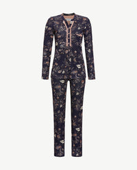 Ringella - Pyjama/lounge knoopsluiting - ronde v-hals - Navy met rose en grijs