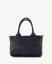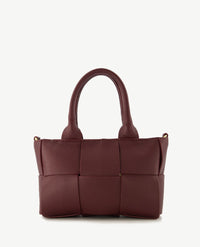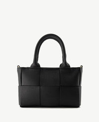 Modern tasje met hengsels in een prachtige kleur ecru. Gevlochten in vlakken en ongevoerd. Binnenin een extra vak dat afgesloten kan worden met een rits. Sluit met een goudkleurige rits. Er is een lang hengsel van hetzelfde leer bij dat verstelbaar is. Is gecombineerd met goudkleurig hardware. Uitgevoerd in sauvage leer.