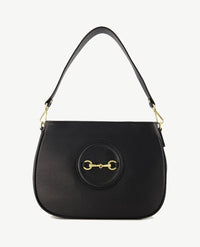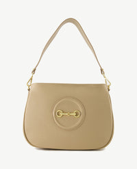Chique, leren handtas met een apart lang verstelbaar hengsel. De tas heeft aan de ene binnenkant een afsluitbaar vak met een rits en aan de andere kant, binnenin een klein vakje tegen de kant. Fijn veel aparte opbergruimte dus. De is bovenop afsluitbaar met een ritsje. 'Hermes' bitje op de voorkant. Er is een extra los hengsel bij waarmee de tas over de schouder gedragen kan worden. Het leer is ecologisch gelooid in de eigen leermakerij.