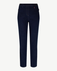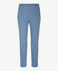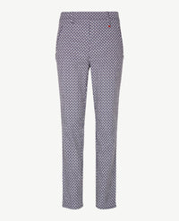 Damesbroek met elastiek rondom in een fijne, wat lichtere zomer kwaliteit met veel katoen in een licht dessin. Sportief model door de 7/8 lengte, van Toni en nieuw binnen de Alice serie. Dit model heeft een brede aangezette, gladde tailleband rondom met riemlussen. Ingezette stukken aan de zijkant, dat kleedt extra af. Twee zakken met ritsjes aan de voorkant en geen zakken op de achterkant. Zeer comfortabel.