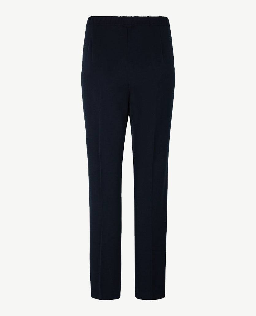 Hetzelfde model als die van de zomerkwaliteit, maar dan warmer! Comfort Slim van Toni, soepelvallende pantalon. Met slank bovenbeen. Elastieken band rondom voor gemakkelijk aan- en uit doen. Hoge taille met steekzakken aan de voorkant. Mooie warme kwaliteit van polyester, viscose en elastan. Zeer soepelvallende stof in prachtige donkere marine kleur. Goed wasbaar en goed voor jarenlang draagplezier en veel mooie combinaties.