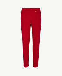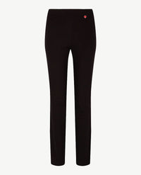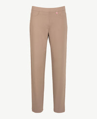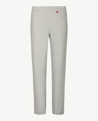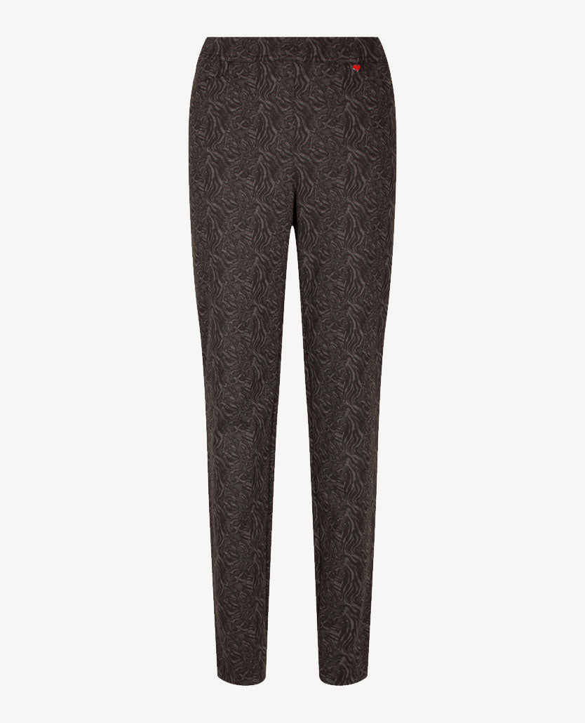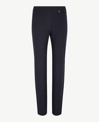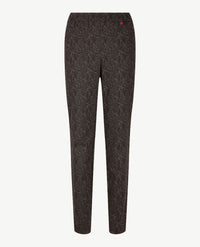 Aansluitende jersey broek met elastiek rondom, met slank bovenbeen en hoge taille in een fijne, wat zwaardere kwaliteit. Een gedekt dessin met navy, grijs en zelfs wat mosgroen. Zeer goed combineerbaar dus. Deze Alice van Toni heeft open zakken aan de voorkant en voor de fijne pasvorm coupenaadjes aan de achterkant.Er is een gulp opgestikt, de broek oogt dus als een gewone pantalon.