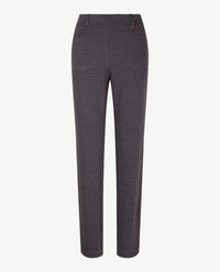 Aansluitende jersey broek met elastiek rondom, met slank bovenbeen en hoge taille in een fijne, wat zwaardere kwaliteit. Deze Alice van Toni heeft een 'Soft touch finish', voelt heel zacht aan. Het kleine zakje in deze '5-pocket' is open, daar kan bijvoorbeeld een sleutel in, de achterzakken zijn ook open. Er is een gulp opgestikt, de broek oogt dus als een gewone pantalon.