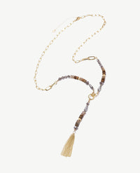 Lange ketting - Goudkleurig met burgundy, zwart en kwastje