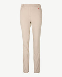 Aansluitende katoenen damesbroek met elastiek rondom, met slank bovenbeen en hoge taille in een fijne kwaliteit met veel rek. Ook deze Alice van Toni heeft een 'Soft touch finish', voelt heel zacht aan, ook aan de binnenkant!. De zakken aan de voorkant zijn open, net als de twee aan de achterkant. Riemlussen en er is een gulp opgestikt, de broek oogt dus als een gewone pantalon.