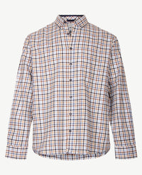 Brax - Daniel C - Overhemd in ruitje - Khaki met navy, wit en rood