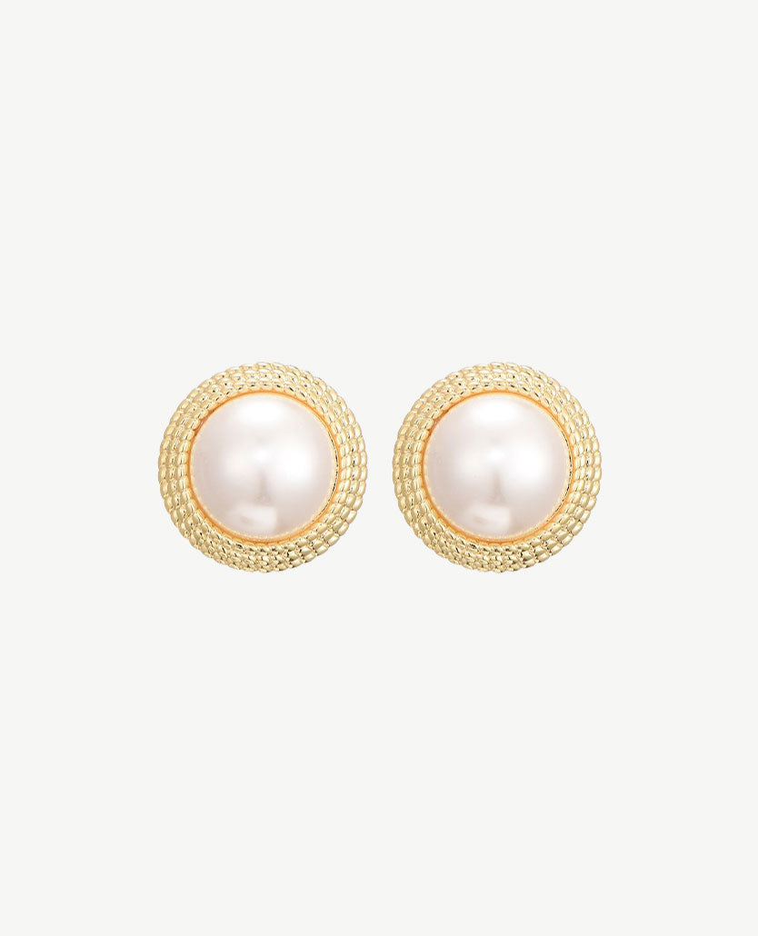 Oorbellen (stekers) - Parel met breed randje van goud