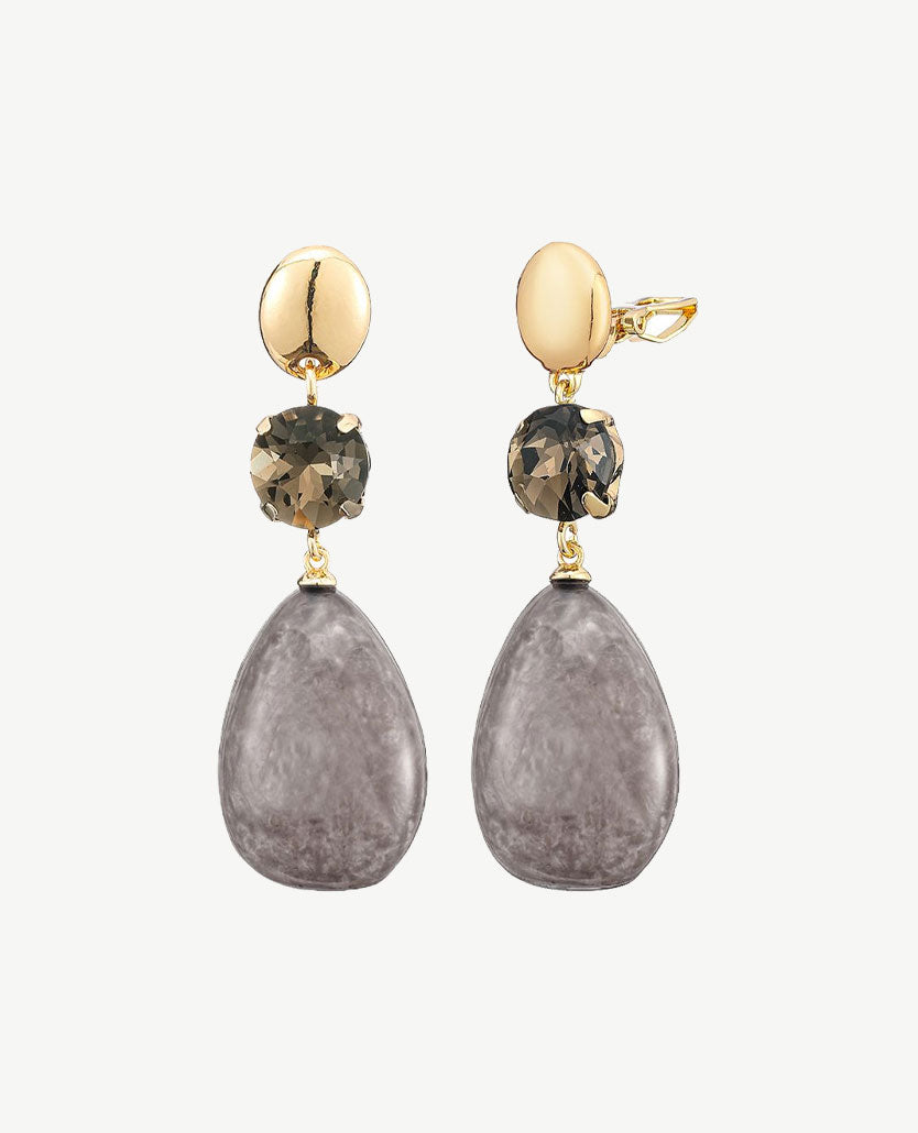 Oorbellen (clips) - Goudkleurig met greige, taupe