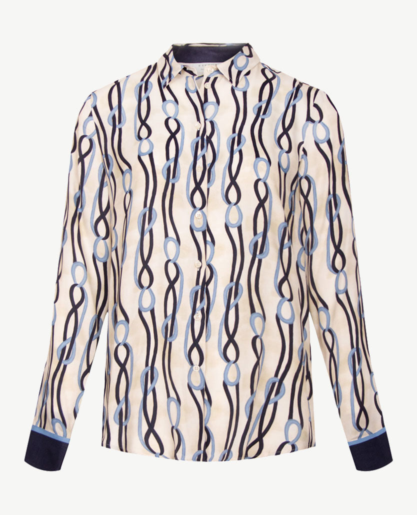 Eterna - Blouse - Satijnlook - Navy met blue, beige en off-white