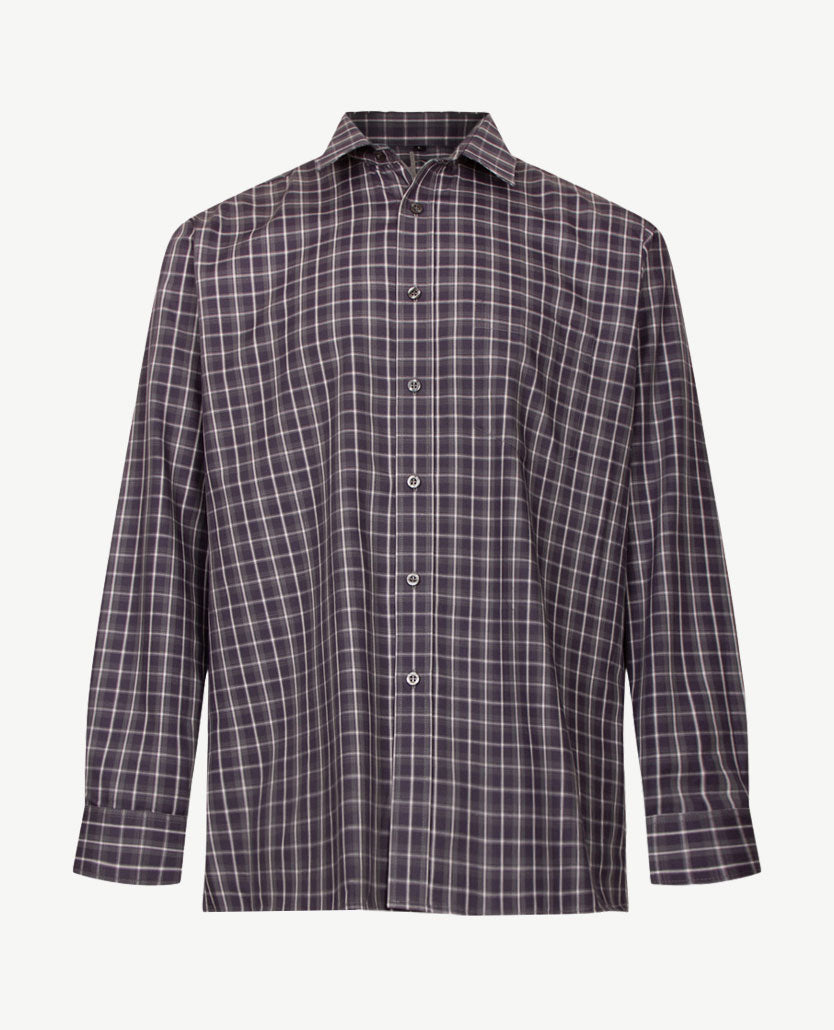 No Buttons® by D.Y.P - Overhemd met klittenbandsluiting - Patrick - Ruitje grijs - paars/blauw