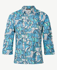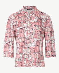 Moderne damespolo in een fris dessin van bloemen met strepen. De 3-4 mouwen zijn behaaglijk om te dragen. Uitgevoerd in een jersey kwaliteit die goed ademt. De kraag en het beleg zijn dubbel uit de stof gesneden. Fijne zachte jersey kwaliteit. Gollé Haug heeft deze polo een sluiting met 2 knoopjes gegeven, sluit niet tot bovenaan.
