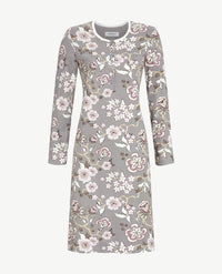 Ringella - Nacht-loungehemd - ronde hals - Taupe met lila, off-white en rose