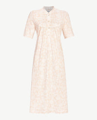 Ons klassiekste nachthemd. Comfortabel om te dragen door de extra plooitjes. Satijnen biesje bij de plooitjes, net iets luxer. Net als de iets rondgesneden zoom. Kan hoog gesloten worden met een tegen de hals aanliggend boordje. Prachtige kleurstelling en fijne jersey kwaliteit met zacht katoen, waar Ringella om bekend staat. Gemakkelijk aan- en uit te doen door dor knoopsluiting en de rek in de stof. En valt lekker lang.