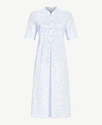 Ringella - Klassiek, lang nachthemd - ronde hals - Bladdessin van blue met wit