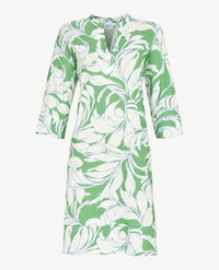 Nacht of loungehemd in een fris dessin dat alles heeft wat je wilt om lekker lang in rond te lopen. Charmant wijd door de strook onderaan en met zakken aan de zijkant het ultieme comfort in stijl. De ronde v-hals is dubbel uit de stof van hetzelfde dessin, net die extra luxe. Comfortabele 3-4 mouwen met een brede manchet van dubbele stof. Ringella heeft dit nachthemd uitgevoerd in een hele zachte kwaliteit van katoen en modal (dat is ook een natuurvezel). Ook fijn voor de vakantie!