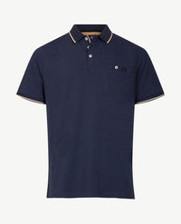 • Beleg en kraag in een tint donkerder dan de rest van de polo