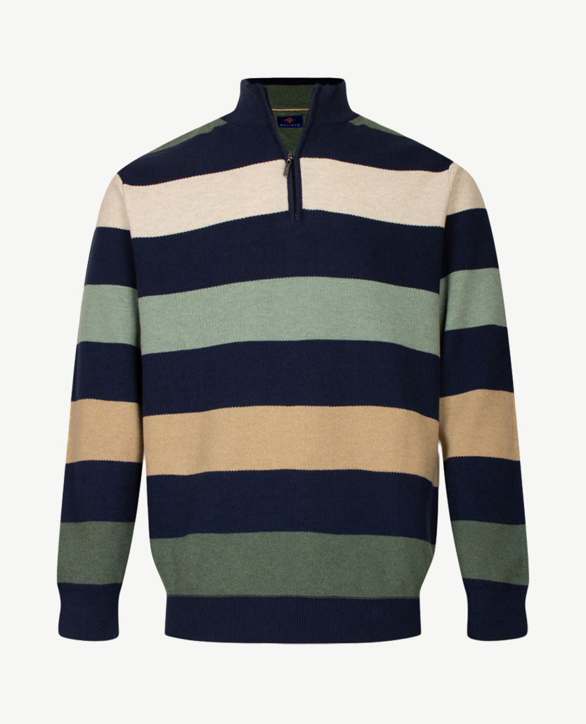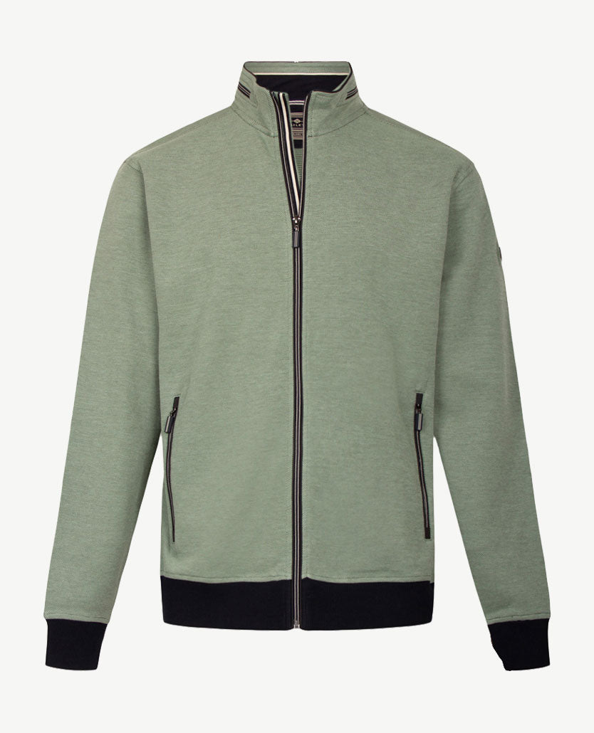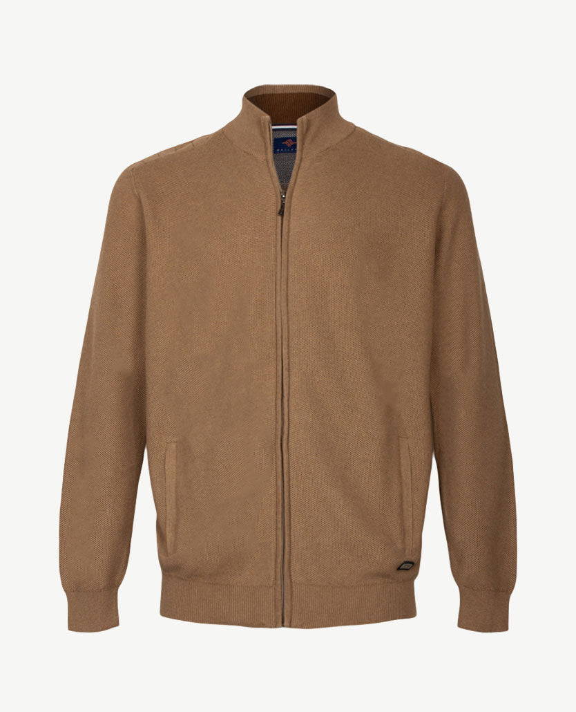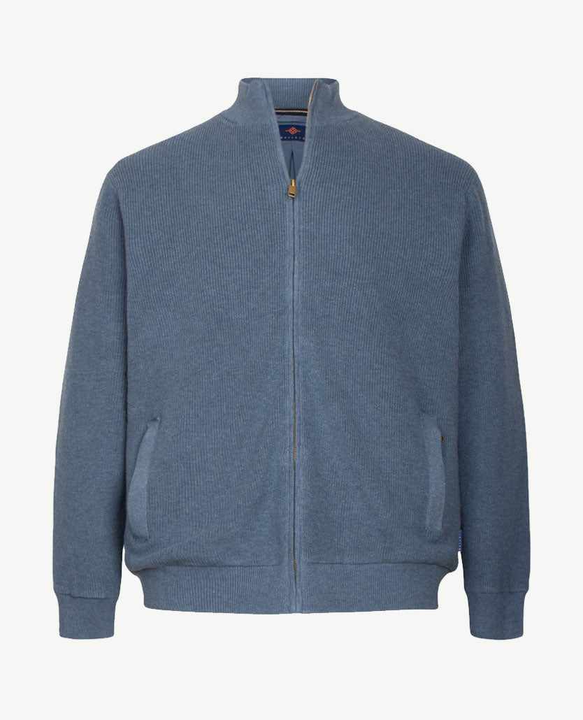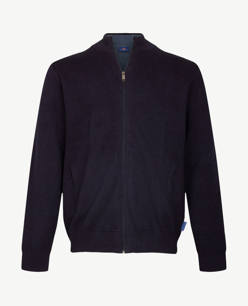 Tijdloos, uitgewerkt vest met opstaande boord met rits. De kraag is aan de buitenkant van dezelfde kleur als de rest van het vest, de binnenkant heeft een afwerking met marine, wit en iets kobalt. De ritsen (ook van de zakken) zijn uni van kleur. Baileys staat bekend om de prachtige kwaliteiten en daar is dit een goed voorbeeld van. Prachtige kwaliteit met katoen en wat menging voor de vormvastheid en de lichtheid.