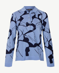 Charmante, klassieke, gebreide damespolo van Gollé Haug in een onwaarschijnlijk fijne en zachte kwaliteit; licht en toch lekker warm. Voelt als wol maar is het niet. 2-kleurig dessin dat aan de achterzijde en de mouwen gelijk is. De kraag is warm donker kobalt, net als het beleg, een lekker frisse kleur. Sluit met 5 knoopjes en heeft dat extra knoopje voor hoog, maar toch open sluiten.